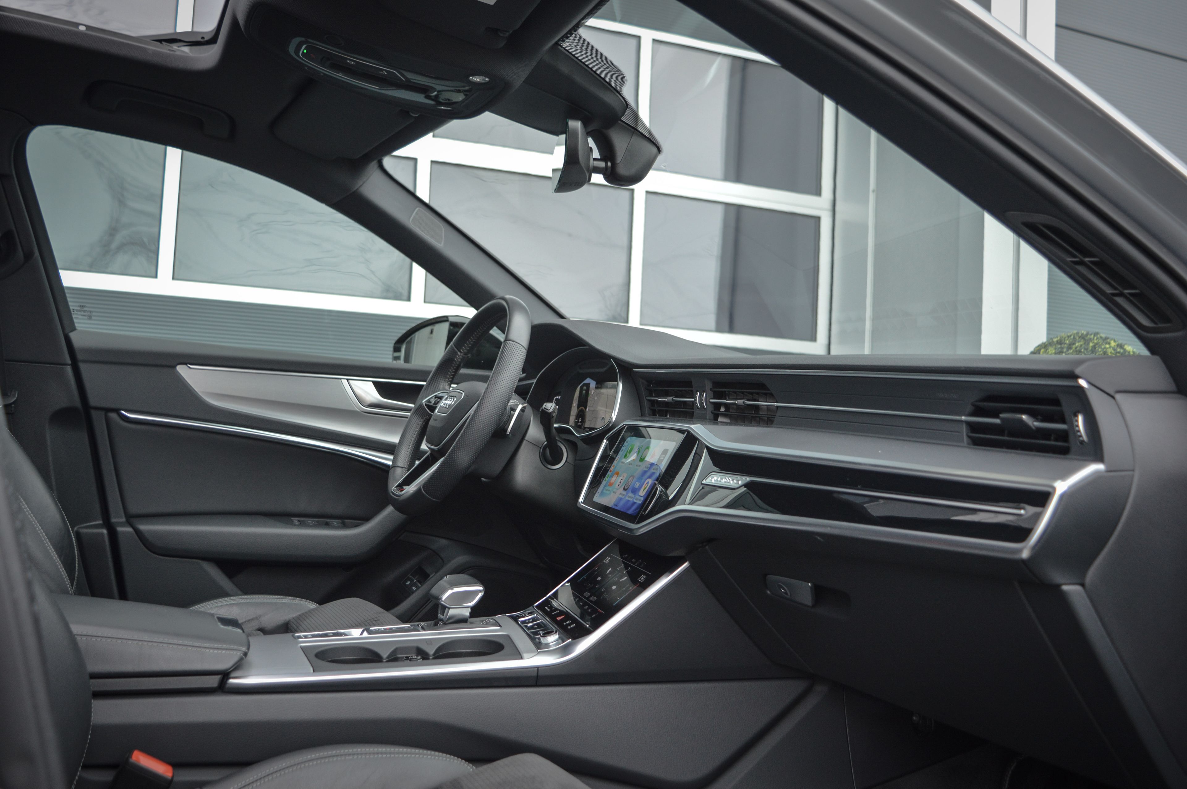 In topstaat verkerende Audi A6 55TFSIe hybrid, 367pk Competition, Quattro. Auto is perfect samengesteld en geleverd in de kleur: Zilver Metallic. Voor de perfecte uitstraling is de Audi nog voorzien van het black-optic pakket en het S-line exterieur en interieur en de S6 diffuser.
