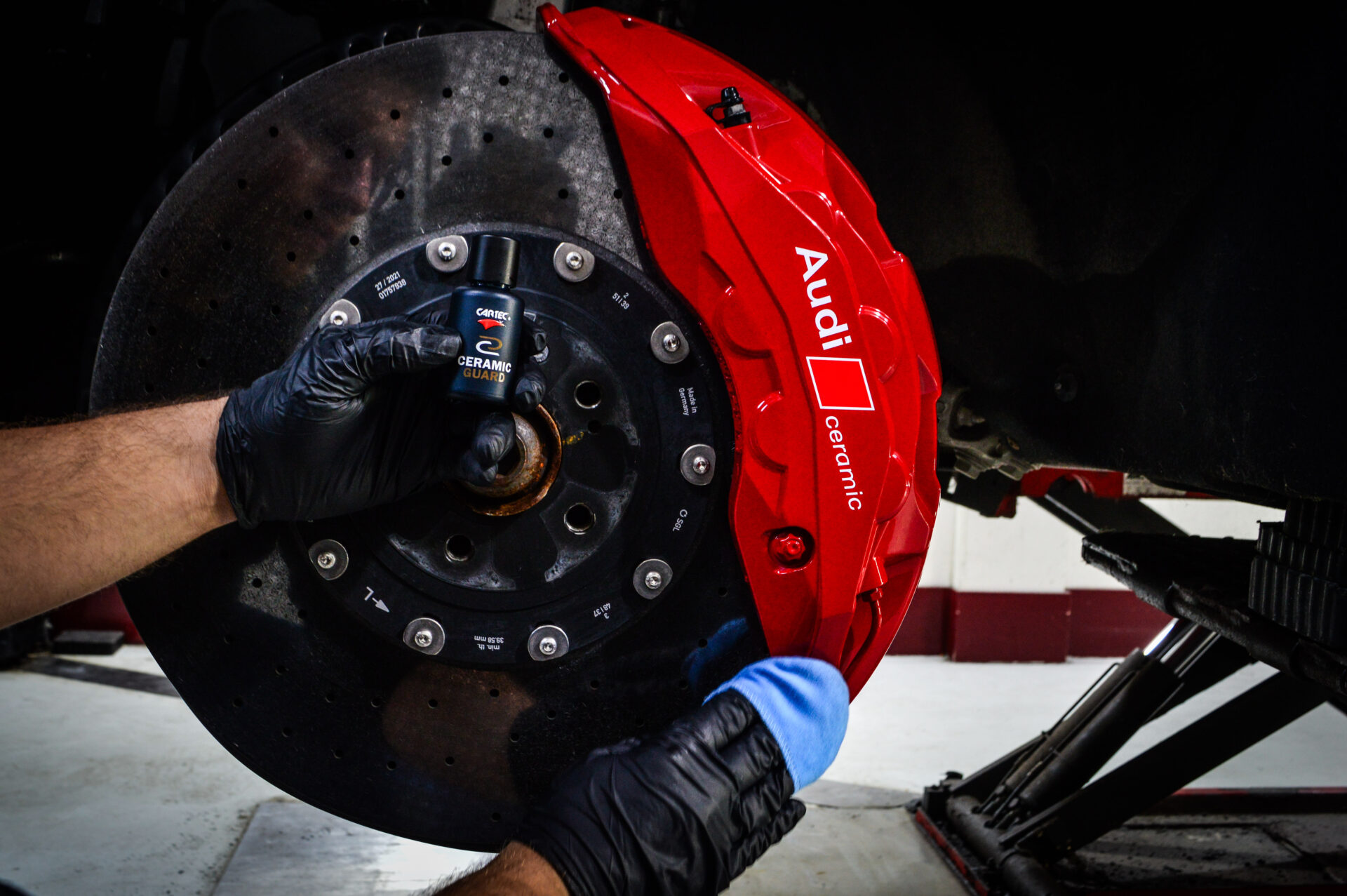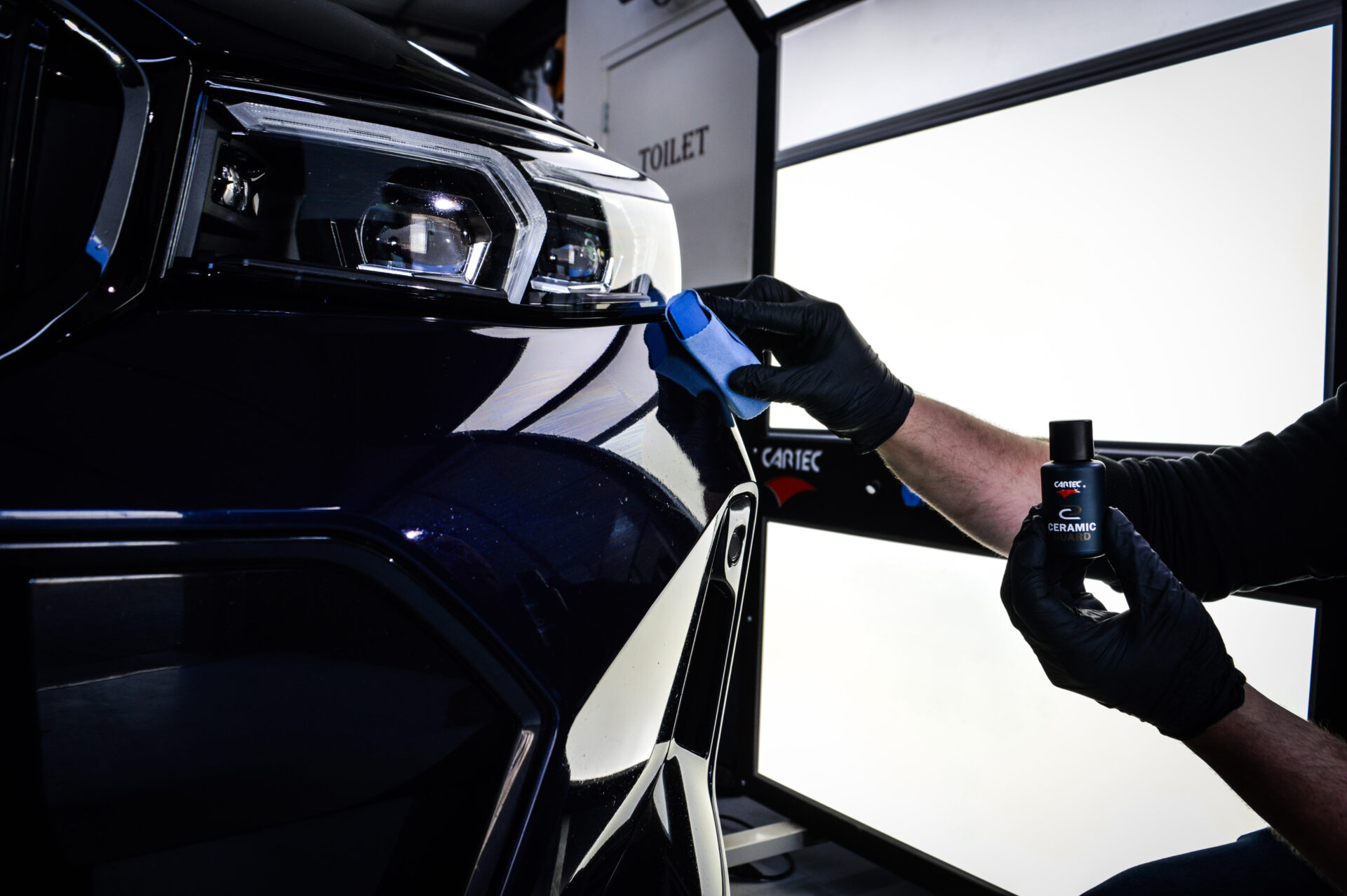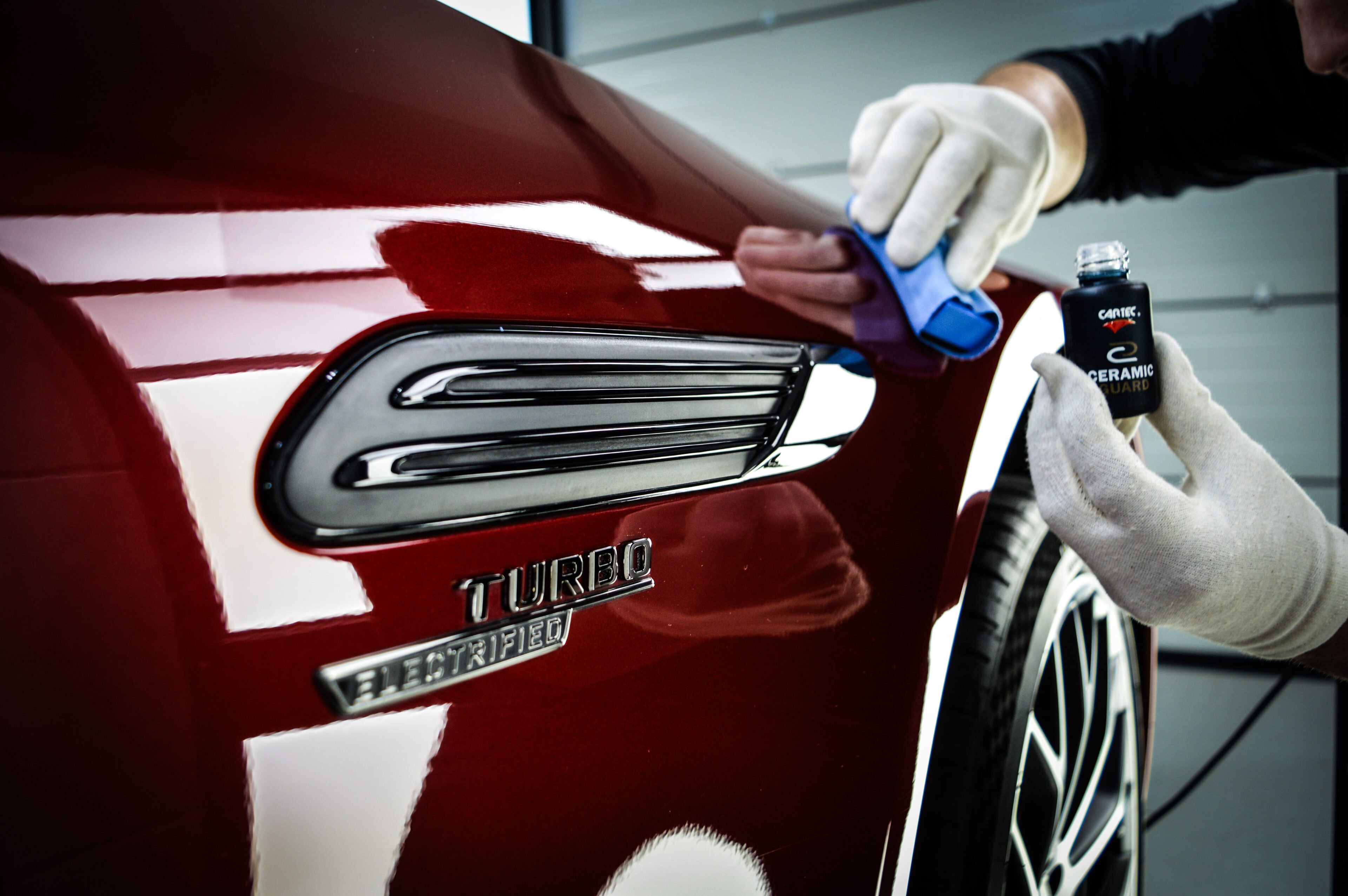 Daarna brengen we een keramische coating “Ceramic Guard SiCarbon+ Coating” van topkwaliteit aan: een kristalheldere, extreem harde beschermlaag die de lak verzegelt en structureel versterkt. Deze coating vormt een onzichtbaar schild tegen vuil, UV-straling, chemicaliën en weersinvloeden, en geeft de lak een ongekende diepe glans. Niet alleen oogt de auto verbluffend strak, hij blijft ook langer schoon en is eenvoudiger te onderhouden.